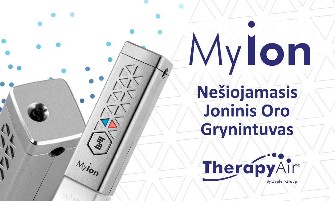 MyIon– tai naujoviškas nešiojamasis oro grynintuvas, kuriame integruota pažangi oro jonizavimo technologija, pašalinanti visas kenksmingas ore tvyrančias daleles: PM 2,5 kietąsias daleles, dulkes, alergenus ir virusus.